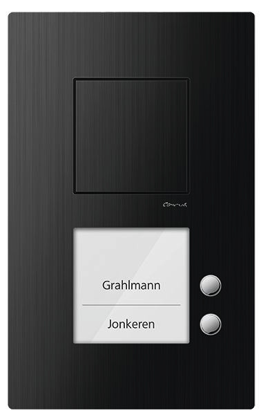 | Kurzbeschreibung | Audio Außenstation Serie Carus IRIS mit 2 Klingeltasten (rechtsbündig), AP schwarz |