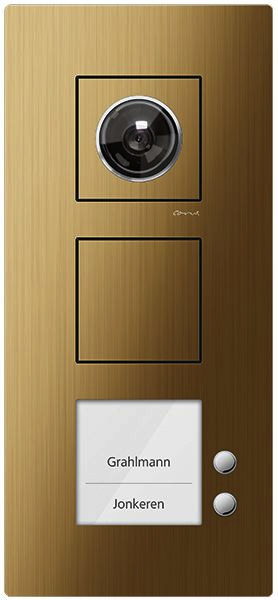 | Kurzbeschreibung | Video Außenstation Serie Carus IRIS mit 2 Klingeltasten (rechtsbündig), AP bronze |