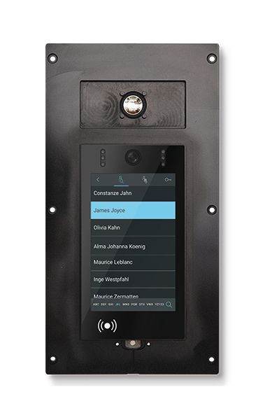 Gehäuse aus massivem Aluminium, handveredelte Strukturoberfläche, Farbe eloxiert schwarz, Bedienung/Konfiguration über kapazitiven Farbtouchscreen mit 7 Zoll LCD, umgebungslichtgesteuerte Helligkeit, Konfiguration über Webbrowser und LCD-Menü, Bis zu 1000 Rufziele, ggf. strukturiert unterteilt in Projekt, Gebäude, Etagen, Ziele, Namen anordnen nach Wunsch, Ziele Alphanumerisch/Numerisch, Smartsuche, integrierte Kamera mit 8 MP CMOS Color, Weitwinkelobjektiv mit 115 Grad Öffnungswinkel, KI Personensuche; mit aut. Zoom und Pan/Tilt, Videokompression H.264, MJPEG, JPEG, Videoauflösung (M)JPEG Max.: 1.280 x 1.024, Videoauflösung H264 Max.: 720 x 480, Bildrate: bis zu 30 Bilder pro Sekunde, Eingebautes Mikrofon und Lautsprecher, Full-Duplex Hochleistungs-Echounterdrückung, Frequenzbereich 200 - 16.000 Hz, Audiocodierung G.711a (PCMA), G.711u (PCMU), Speex (8, 16, 32kHz), G.722, G729 (8kHz), Opus (48kHz), iLBC (8kHz), Protokolle: SIP RFC 3261, kompatibel zu vielen SIP-(Bild-)Telefonen oder Softphones, TCP/UDP/IP, RTP, HTTP, DNS, NTP, DHCP(client), SNMP, SIP-Client, integrierter Registrarserver und Peer-to-Peer-Betrieb, integrierter RFID Leser (Mifare classic), integriertes Codeschloss, Identifikation über RFID und Code, Schnittstellen: Ethernet, 10/100BaseT auf RJ45-Buchse, 2 x Trigger Eingang - Funktion programmierbar, 2 x Relais-Wechsler - Türöffner, usw., Stromversorgung: Power-over-Ethernet (PoE) 802.3af und 802.3at, alternative Stromversorgung 26 V 2,5 A, Schutzklasse IP65, zulässige Umgebungstemperatur: -20 °C bis 60 °C, Gehäusemaß (HxBxT): 362,5 x 192 x 8 (52 inkl. Abschlusskasten) mm, Montagehöhe: 1600 mm