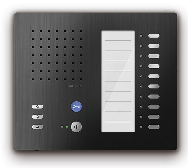 | Kurzbeschreibung | Audio Innenstation zum Freisprechen Serie Carus ADAPTO +10 Tasten, Aufputzmontage schwarz |