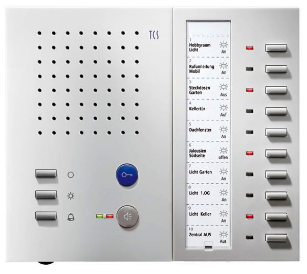 Aufputzmontage / aufstellbar (TischZubehör), Gehäuse aus antistatischem und recycelbarem Kunststoff, Audio- und Video-Innenstationen sind innerhalb einer Anlage kombinierbar, Farbe: weiß, 3-Draht-Technik erforderlich, zulässige Umgebungstemperatur: 0 Grad C bis 40 Grad C, Gehäusemaß: H 146 mm x B 172 mm x T 27 mm, Montagemaß: H 148 mm x B 172 mm x T 29 mm, Grundmodul: Freisprechen (hands-free) / manuell gesteuertes Wechselsprechen aktivierbar, automatisches Freisprechen nach Internruf aktivierbar, blaue Türöffnertaste mit aktivierbarer Etagentüröffnerfunktion, Taste für Rufannahme bzw. Umschalttaste Sprechen / Hören, wenn Wechselsprechen aktiviert, Lichttaste, 1 Funktionstaste ab Werk: mit Steuerfunktion belegt / aktivierbare Alternativbelegung: Internruf, Türöffnerautomatik, Rufumleitung, Auswahl aus 13 Ruftönen, akustische und optische Rufunterscheidung zwischen Haus-, Wohnungstür und Internruf, akustische Türrufunterscheidung für 2 Türen, Ruftonlautstärke / manuell einstellbar, Ruftonabschaltung mit optischer Anzeige, 1 Parallelruf aktivierbar, optische Kurzzeitspeicherung von Türrufen, optische Besetztanzeige bei bestehender Sprechverbindung, Mithörsperre und automatische Gesprächsabschaltung, Komforttastatur: 10 Funktionstasten ab Werk: mit Steuerfunktion belegt / aktivierbare Alternativbelegung: gezielter Internruf, gezieltes Türsprechen, gezieltes Türöffnen, Rufumleitung, Zustandsanzeige Sensor mit Binäreingang, abwechselnde Steuerfunktion (Ein / Aus)