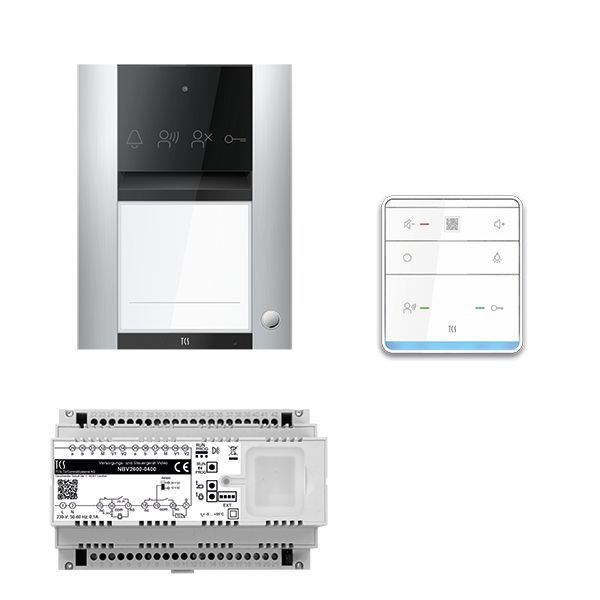 Vorkonfiguriertes Paket für 1 Wohneinheit für den TCS:BUS bestehend aus: 1x PES PRO Audio Außenstation 1T AP EN, Artikelnummer: ASA110101-0010, vorprogrammiert, 1x TASTA Freisprecher 6Tasten AP WS SDI, Artikelnummer: ISW6010-0145, 1x Versorgungs- und Steuergerät Video 8 TE, Artikelnummer: NBV2600-0400, Das Paket ist ab Werk vorkonfiguriert und bedingt erweiterbar. Die Funktionen der Innen- und Außenstationen können mit TCS-Serviceprodukten bedingt verändert werden.