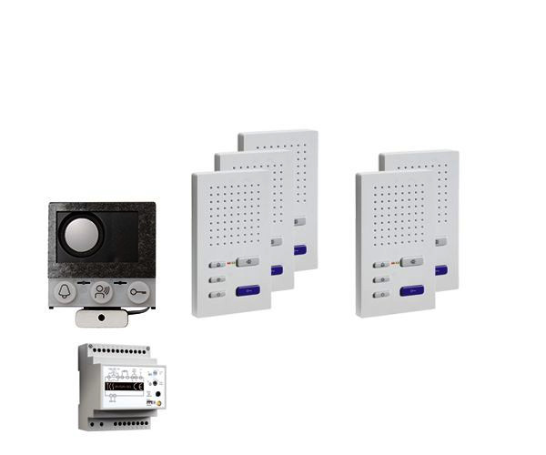 Vorkonfiguriertes Paket für 5 Wohneinheiten für den TCS:BUS bestehend aus: 1x Einbau-Türlautsprecher (Serie TCU) 16WE, Artikelnummer: ASI12000-0000, vorprogrammiert, 5x Innenstation zum Freispr. 5Tasten WS, Artikelnummer: ISW3030-0140, 1x Vers. + Steuerg. BVS20 1Strang 4TE, Artikelnummer: BVS20-SG, Das Paket ist ab Werk vorkonfiguriert und bedingt erweiterbar, Die Funktionen der Innen- und Außenstationen können mit TCS-Serviceprodukten bedingt verändert werden, Die Komponenten unterstützen einen stand-alone-Betrieb