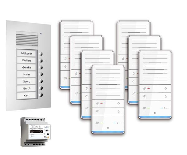 | Kurzbeschreibung | audio:pack UP für 7 Wohneinheiten, mit Außenstation PUK 7 Klingeltasten + 7x Freisprecher ISW6031 + Steuergerät BVS20 |