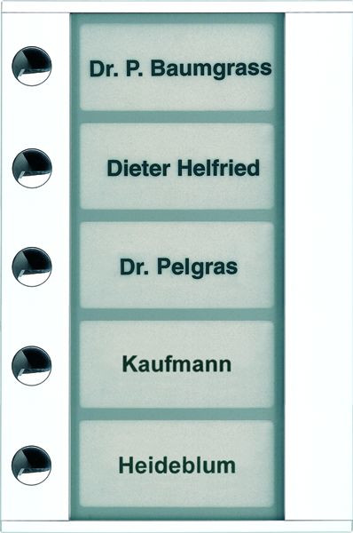 Integrierte Elektronik- und Klingeltastenverdrahtung, Anschluss über Verbindungsleitung an PDS-Außenstation, für den Anschluss ergänzender Klingeltastenerweiterungen vorbereitet, Namensschildgröße 74 x 34 mm, Farbe: weiß lackiert, RAL 9010, Abmessungen: 204 x 135 x 20 mm