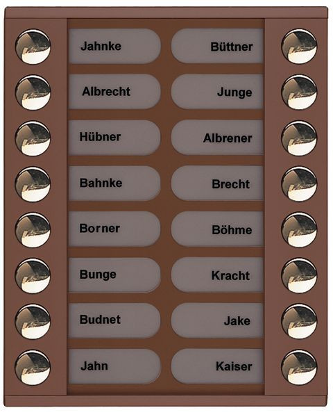 | Kurzbeschreibung | PET/AVE TCS:BUS Klingeltastenerweiterung 16T AP bronze |