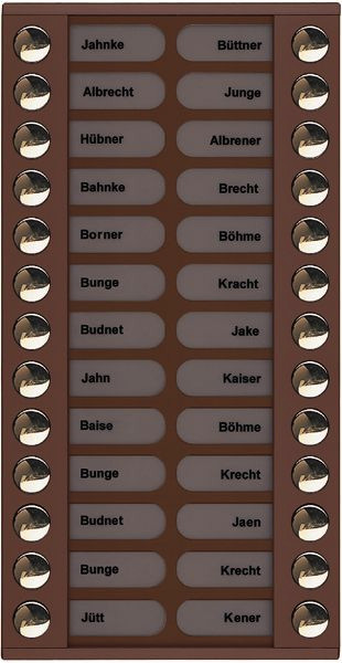 | Kurzbeschreibung | PET/AVE TCS:BUS Klingeltastenerweiterung 26T AP bronze |