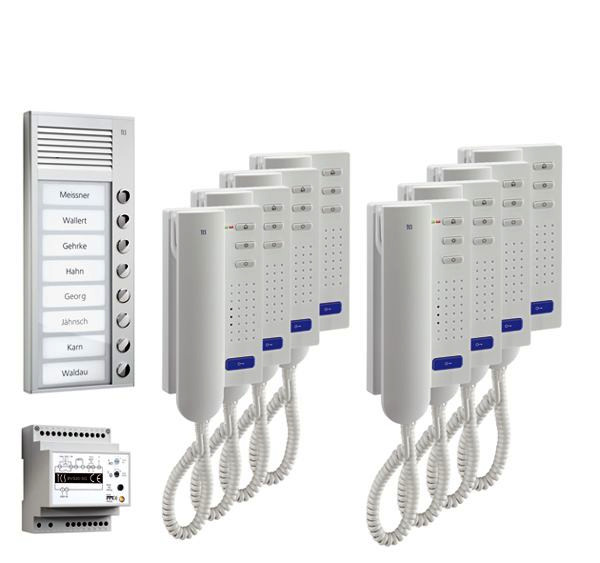 | Kurzbeschreibung | audio:pack AP für 8 Wohneinheiten, mit Außenstation PAK 8 Klingeltasten + 8x Türtelefon ISH3030 + Steuergerät BVS20 |