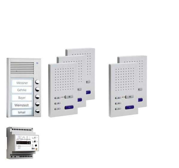| Kurzbeschreibung | audio:pack AP für 5 Wohneinheiten, mit Außenstation PAK 5 Klingeltasten + 5 x Freisprecher ISW3030 + Steuergerät BVS20 |