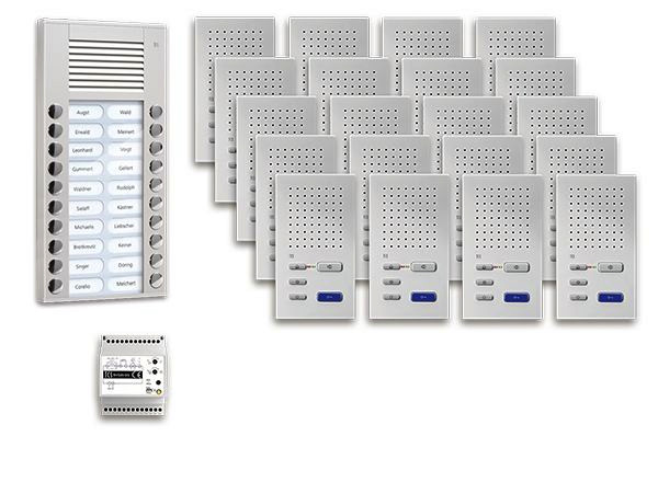 | Kurzbeschreibung | audio:pack AP für 20 Wohneinheiten, mit Außenstation PES 20 Klingeltasten + 20x Freisprecher ISW3030 + Steuergerät BVS20 |