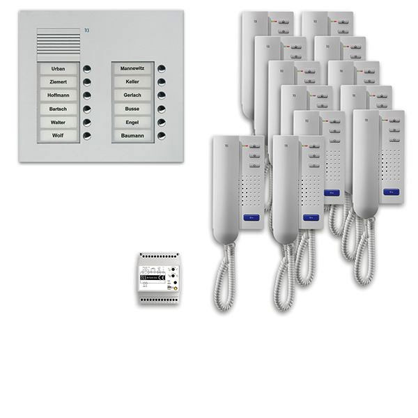 | Kurzbeschreibung | audio:pack UP für 12 Wohneinheiten, mit Außenstation PUK 12 Klingeltasten 2-spaltig + 12x Türtelefon ISH3030 + Steuergerät BVS20 |