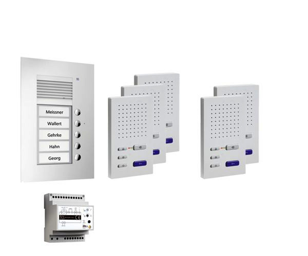 | Kurzbeschreibung | audio:pack UP für 5 Wohneinheiten, mit Außenstation PUK 5 Klingeltasten + 5x Freisprecher ISW3030 + Steuergerät BVS20 |