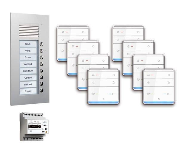 | Kurzbeschreibung | audio:pack UP für 8 Wohneinheiten, mit Außenstation PUK 8 Klingeltasten + 8x Freisprecher ISW6010 + Steuergerät BVS20 |