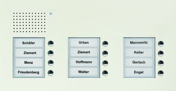 für 12 Wohneinheiten, Unterputzmontage, Frontplatte 3 mm, win:clip-Prinzip, Namensfeldgröße: H 19 mm x B 62 mm, Metallklingelknöpfe mit vergoldeten, wartungsfreien Kontakten, langlebige und energiesparende Namensschildbeleuchtung, bruchsicheres Namensschildglas, Quittungston beim Drücken der Klingeltaste, Material / Farben: Aluminium weiß pulverbeschichtet (WS), 3-Draht-Technik erforderlich, zulässige Umgebungstemperatur: -20 Grad C bis 50 Grad C, Maße Frontplatte: H 208 mm x B 398 mm x T 3 mm, Maße UP-Kasten: H 159 mm x B 374 mm x T 40 mm