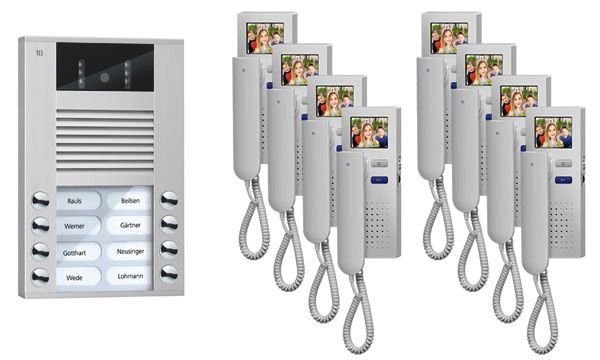 | Kurzbeschreibung | video:pack AP für 8 Wohneinheiten, mit Außenstation AVE 8 Klingeltasten + 8x Video Türtelefon IVH3222 + Steuergerät NBV2600 |