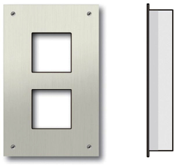 Frontplatte 3 mm Edelstahl geschliffen, zum Einbau von Modulen der Serie AMI in individualisierter Bestückung, Ausschnittsmaß 82 mm x 82 mm, Modulrasterabstand 120 mm, UP Kasten