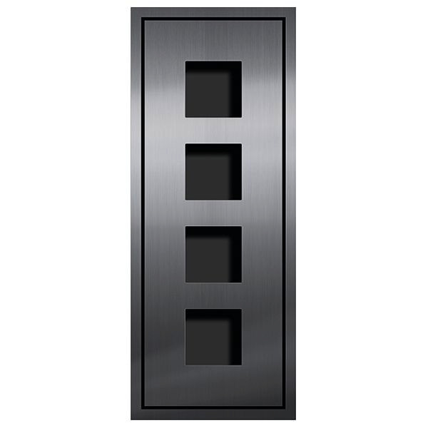 Produktmerkmale, Frontplatte+Aufnahmefach und Inputzkasten, Anzahl integrierbarer Module: 4, Modulintegration: Verschraubung auf Gewindebolzen, Öffnungsprinzip: Schiebemechanismus in oberer Fuge, funktional erweiterbar: mit Außenstationsmodulen der Serie AMI, Montageform: Inputzmontage/Unterputzmontage, Material / Farbe Frontplatte: Edelstahl geschliffen und gebürstet, Material / Farbe UP-Kasten: Edelstahl geschliffen und gebürstet, technische Daten, Materialstärke Frontplatte: 3 mm, Frontplattenausschnitt HxB mm: 82x82, Frontplatte HxBxT mm: 560?x?200?x?3, UP-Kasten HxBxT mm: 600?x?240?x?50, zulässige Umgebungstemperatur: -20 bis +50 Grad C, optionales Zubehör, Funktionsmodule der Serie AMI, Unterkonstruktion für WDVS und hinterlüftete Vorhangfassaden