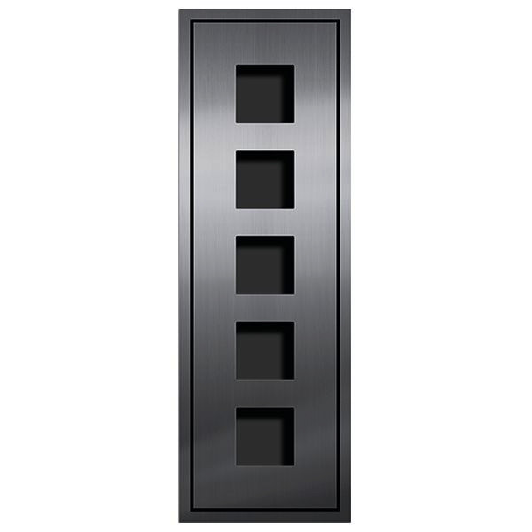 Produktmerkmale, Frontplatte+Aufnahmefach und Inputzkasten, Anzahl integrierbarer Module: 5, Modulintegration: Verschraubung auf Gewindebolzen, Öffnungsprinzip: Schiebemechanismus in oberer Fuge, funktional erweiterbar: mit Außenstationsmodulen der Serie AMI, Montageform: Inputzmontage/Unterputzmontage, Material / Farbe Frontplatte: Edelstahl geschliffen und gebürstet, Material / Farbe UP-Kasten: Edelstahl geschliffen und gebürstet, tchnische Daten, Materialstärke Frontplatte: 3 mm, Frontplattenausschnitt HxB mm: 82x82, Frontplatte HxBxT mm: 680?x?200?x?3, UP-Kasten HxBxT mm: 720?x?240?x?50, zulässige Umgebungstemperatur: -20 bis +50 Grad C, optionales Zubehör, Funktionsmodule der Serie AMI, Unterkonstruktion für WDVS und hinterlüftete Vorhangfassaden