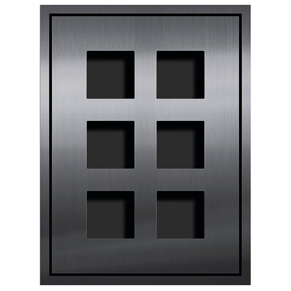 Produktmerkmale, Frontplatte+Aufnahmefach und Inputzkasten, Anzahl integrierbarer Module: 6, Modulintegration: Verschraubung auf Gewindebolzen, Öffnungsprinzip: Schiebemechanismus in oberer Fuge, funktional erweiterbar: mit Außenstationsmodulen der Serie AMI, Montageform: Inputzmontage/Unterputzmontage, Material / Farbe Frontplatte: Edelstahl geschliffen und gebürstet, Material / Farbe UP-Kasten: Edelstahl geschliffen und gebürstet, technische Daten, Materialstärke Frontplatte: 3 mm, Frontplattenausschnitt HxB mm: 82x82, Frontplatte HxBxT mm: 440?x?320?x?3, UP-Kasten HxBxT mm: 480?x?360?x?50, zulässige Umgebungstemperatur: -20 bis +50 Grad C, optionales Zubehör, Funktionsmodule der Serie AMI, Unterkonstruktion für WDVS und hinterlüftete Vorhangfassaden