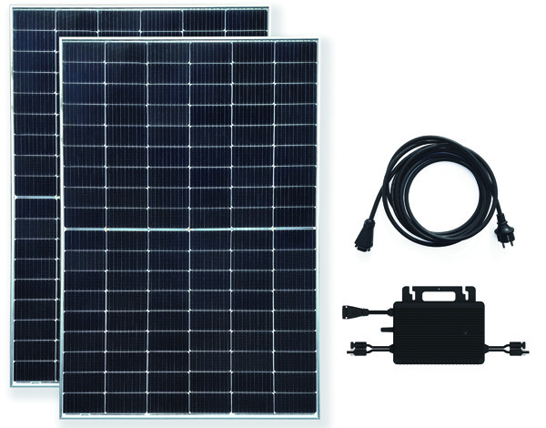 Anbringung auf Flachdach, Terrasse, Balkon, Zaun undviele weitere Möglichkeiten• Einfache Installation: Anschließen, Loslegen, Stromsparen• Daten und Alarme in Echtzeit per S-Miles-APP• Datenerfassung zur Energieerzeugung• Geeignet für die Einspeisung von Strom in das 230VHausnetz• Maximale Einspeiseleistung des Inverters 800W• Ideal zur Deckung der Grundlast am Tag in Ihrem Zuhause• 3 Bypass-Dioden für verbesserte Stromausbeute• Halbzellenmodul 108 (12x9), Technische Spezifikationen:• Solarmodul: Monokristallin• Kabelanschluss: MC4• Max. Leistung: 410W• Maximale Leistungsspannung (Vmp):31,46V• Maximale Stromstärke (Imp): 13,04A• Modul-Wirkungsgrad: 20,97%• Max. Systemspannung: 1000V• Kabellänge: Modul1=90cm /Modul2=150cm• Betriebstemperatur: -40°C ~ +85°CMikro-Wechselrichter 800W• Nennausgangsleistung: 800VA• Nennausgangsstrom: 3,48A• Nennausgangsspannung: 230V• Betriebstemperatur: -40°C - +65°C• Übertragung: Eingebautes WLAN• Frequenzbereich: 2,412 - 2,472GHz• Abgestrahlte Sendeleistung: max.18,4dBm/69,2mWGewicht / Abmessungen (gesamt): 45kg /172,4 x 113,4 x 8cmKompatibilität: App „S-Miles Installer“: iOS13.0 oder höher; Android 10.0 oderhöher/EN, DE, FR, ES, NL, PL, PO, IT, CZ(11-2023)Verpackungsinhalt: 1x PV-Mikro- Wechselrichter800W, 2x Solarmodul 410W, 1x 5mAnschlusskabel, 1x Gebrauchsanleitung, Ertrag:BalkonkraftwerkLeistung 800 WattØ Stromertrag / Jahr850 kWhØ Stromertrag / Tag2.33 kWh