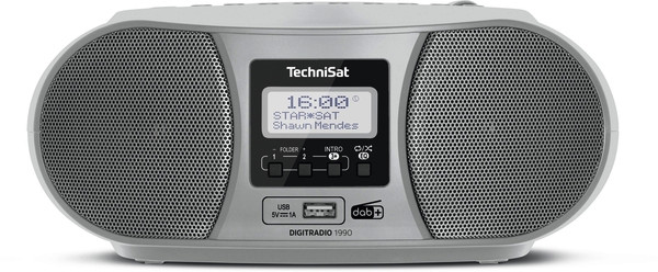 DAB+ Digitalradio, UKW-Radio (mit RDS und PLL), Systemleistung 3 W (RMS), beleuchtetes LC-Display, MP3-CD-Player, Bluetooth-Audiostreaming (Empfang), USB-Charging/Playback, Netz- und Batteriebetrieb, praktischer Tragegriff