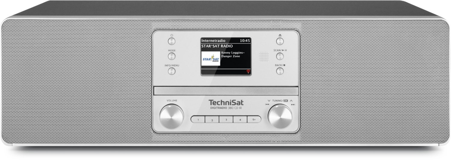 DAB+ Digitalradio, UKW-Radio (mit RDS und PLL), grenzenlose Musikvielfalt via Internetradio, Audiostreaming (Spotify, Bluetooth), TFT-Farbdisplay (2,4 "), Favoritenspeicher (20 DAB+/20 UKW/20 IR), CD-Player mit MP3-Wiedergabe, USB-Schnittstelle mit Ladefunktion und MP3-Wiedergabe, Steuerung per TechniSat CONNECT-App (iOS, Android)