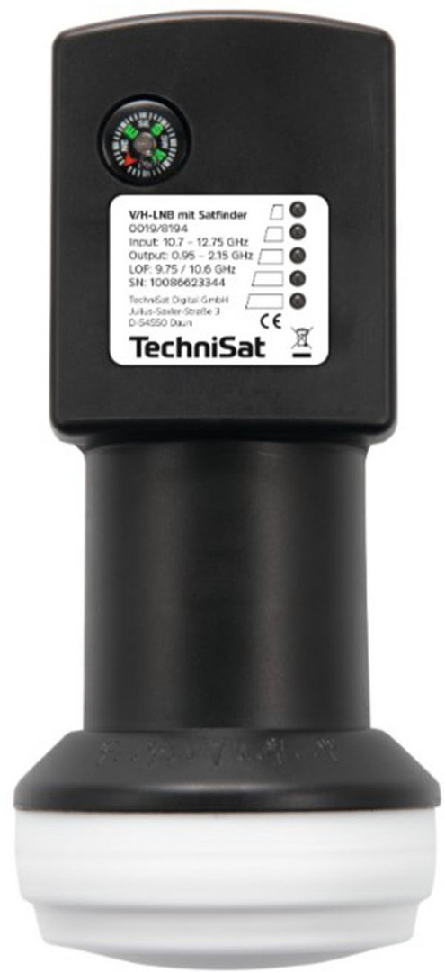 Der Universal-V/H-LNB mit integriertem Satfinder von TechniSat ist die ideale Lösung für alle, die unterwegs oder zuhause schnell und zuverlässig Satellitenfernsehen empfangen möchten. Dank seiner kompakten Bauweise und cleveren Ausstattung eignet sich dieses LNB besonders für den Einsatz im Campingbereich oder bei mobilen SAT-Anlagen.Technische Highlights: Für 1 Teilnehmer - perfekt für Einzelanschlüsse, Feedaufnahme: 40 mm - kompatibel mit gängigen SAT-Schüsseln, Ausgang: 1 F-Anschluss, Verstärkung: 56-65 dB - für starke Signalqualität, Rauschmaß: typisch 0,9 dB - für klaren Empfang, Integriertes Levelmeter & Kompass - erleichtert die schnelle Ausrichtung auf den gewünschten Satelliten, Satfinder direkt im LNB - keine zusätzlichen Geräte nötig. Maße (BxHxT): 12,9 × 5,7 × 5,7 cm, Gewicht: 102 gEingangsfrequenzbereich: Low-Band: 10,7-11,9 GHz, High-Band: 11,7-12,75 GHzAusgangsfrequenzbereich: Low-Band: 950-1.950 MHz, High-Band: 1.100-2.150 MHzLNB-Steuerung: Vertikal: 12-14,5 V, Horizontal: 16-20 V, Bandumschaltung: 22 kHz.Text mit KI erzeugt