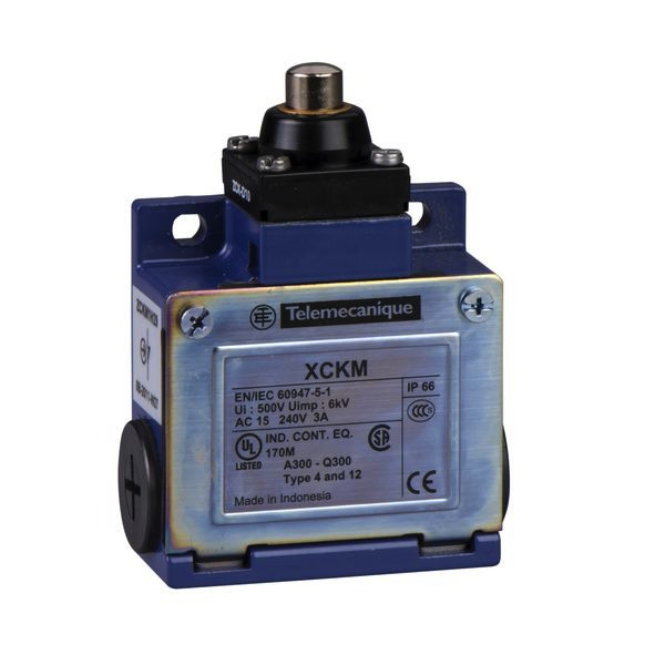 XCKM Positionsschalter Metall Kuppenstößel, 1 Öffner und 1 Schließer, gestuft schaltend, M20 Anschluss.