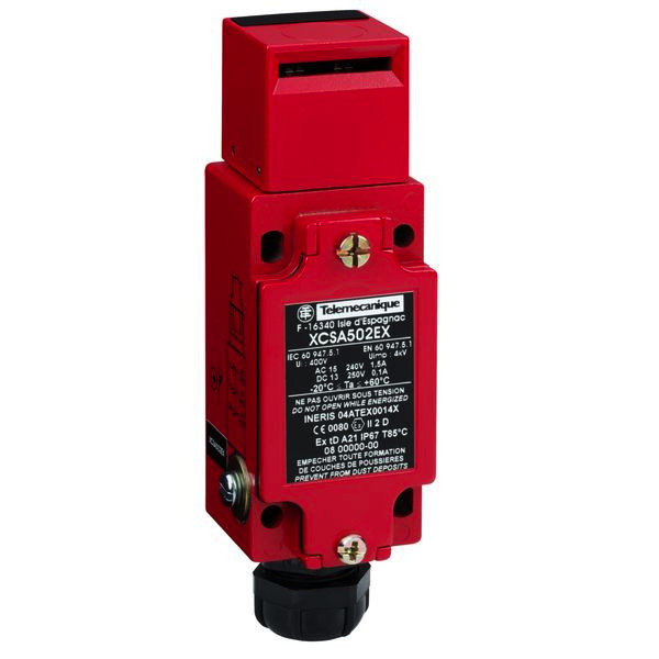 XCSA SI. Positionsschalter Metall gekapselt, 2 Öffner und 1 Schließer - gestuft schaltend, oder Zuhaltung, 1 Leitungseinführung M20 Anschluss, ATEX Version.