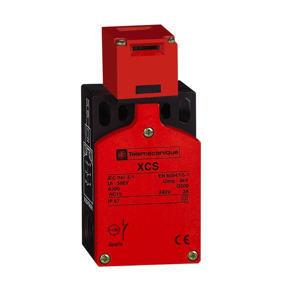 Sicherheits-Positionsschalter Kunststoff mit getrenntem Betätiger. XCSTA-Sicherheits-Positionsschalter Kunststoffgehäuse, Gestuft schaltend, 2 Leitungseinführung. Hilfsschalter 1 Ö + 2 S. Umsetzbarer Antriebskopf, Schutzart IP 67, 2 Leitungseinführungen M16 x 1,5, Hilfsschalter zwangsöffnend gestuft schaltend, ohne Sprungfunktion. Abmessungen 52 x 30 x 114,5 mm.