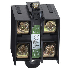 Hilfsschalterblock für Positionsschalter, 2 Schließer, gestuft schaltend, gleichzeitig schaltend.
