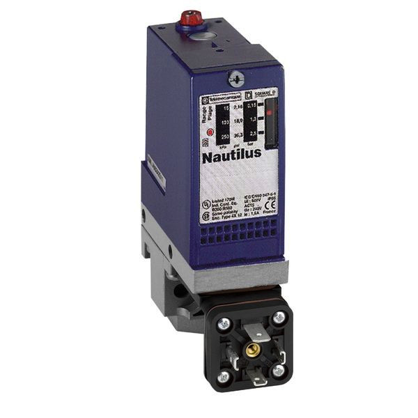 OsiSense XM ? Elektromechanischer Druckschalter XML A. XMLA-Druckschalter feste Hysterese, 1 Schaltp. Anschluss Stecker DIN, Druckbereich 160 bar, Schaltkontakte Ö + S. Für Hydrauliköle. Süß- und Meerwasser. Luft bis +160 °C. Nichteinstellbare oder einstellbare Hysterese. Einstellbereich 1-500 bar.