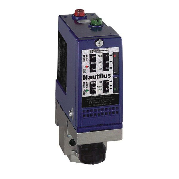 XMLB-Druckschalter 20 Bar, einstellbare Hysterese 2 Schaltpunkt, 1 Öffner oder 1 Schließer, Anschlussklemmen.