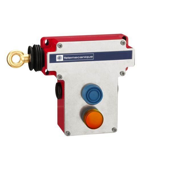 mit Leuchtmelder Seilzug-Notschalter Baureihe XY2 CE. Seilzug-Notschalter für Seillängen bis max. 70M LI 2ÖS LM. Metallgekapselt IP 65, mit einstellbarem Auslöseweg, UL (NiSD), CSA, CCC. Seilspannkraft 19,5 - 24,5 daN, Rückstelltaster mit Schutzkappe. Für Seillänge 70 m.