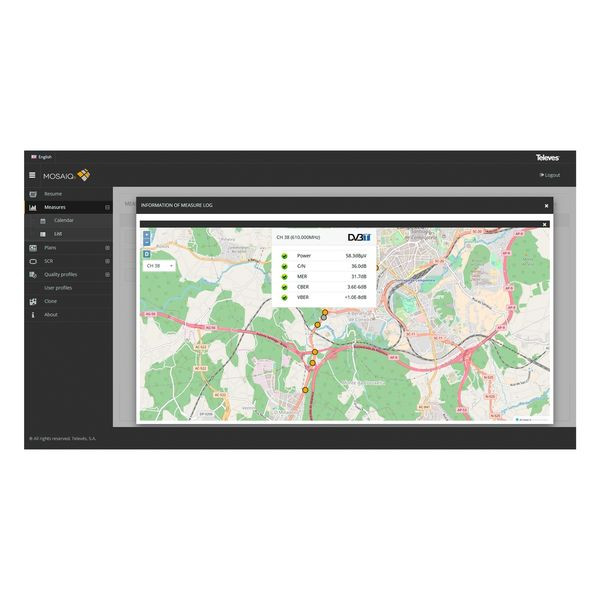 Mit der GPS Drive Test Option, für das MOSAIQ6, können die Messwerte auf einer Karte mit einer GPSPositionabspeichert werden um in einem Gebiet eine Empfanganalyse sicherzustellen.