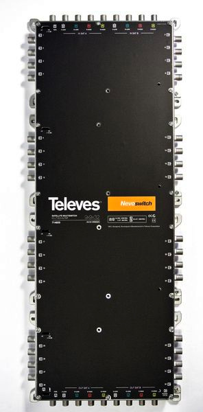 Nevo Multischalter 9in32 im Gussgehäuse, kaskadierbar, zu- und abschaltbare Abschlusswiderstände in jedem Einzel- und Kaskadenschalter, Schalter 10dB-Eingangsverstärkung für alle SAT-Eingänge zu/abschaltbar. Durchgangsdämpfung SAT: 12dB / Terr.: 8dB,SAT TN-Dämpfung 1-8/9-16/17-24/25-32 = 950 MHz 8/11/14/18 und 2400MHz 3/6/9/13 dB, Terr.TN-Dämpfung 1-8/9-16/17-24/25-32 = 2/5/7/10, DC-Durchlass auf Vertikal Low und Terr., max. Eingangspegel Sat 102 / Terr. 104 dBµV. Netzteil erforderlich (MS-NT1208N), Stromaufnahme Netzteil 335mA, Sat-Receiver 33mA. Abmessungen (BxHxT) = 208x519x30mm