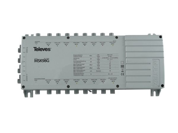 MULTRIX - Kaskadierbares Multischaltersystem und dazugehörige Systemverstärker Kaskadenmultischalter MSK 94 G und MSK 98 G können auch zur Erweiterung der Multischalter MS 94 NG - MS 916 NG verwendet werden Die Bauteile MSB 94 NG, MSB 98 NG, MSV 411 G und MSV 511 G können an beliebiger Stelle im Kaskadensystem eingesetzt werden Die Bauteile können mit den Quickverbinder FSQ 2 direkt zusammengesteckt werden.