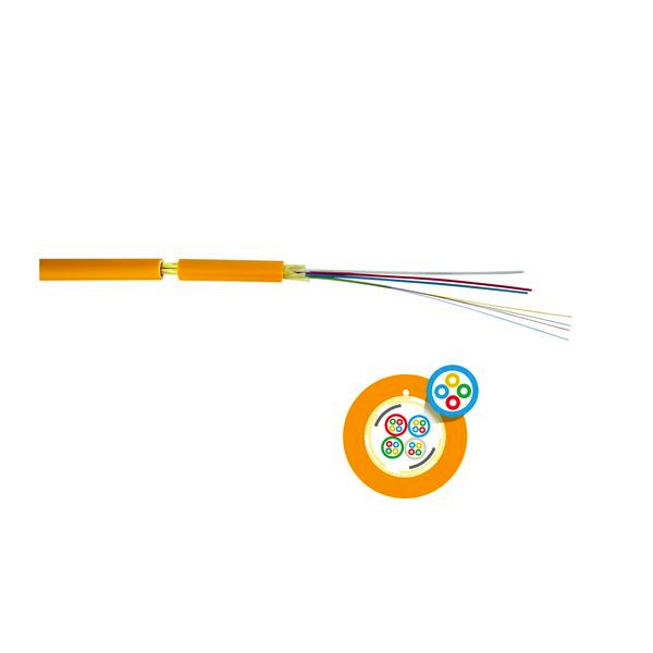 16-Faser-Kabel mit UV-beständigem LSFH-Mantel für die Innenmontage und die Außenmontage. Aufgeteilt in 4 Mikro-Module von jeweils 4 Fasern, jede mit eigenem LSFH-Mantel und unterschiedlicher Farbe. Dies ermöglicht eine bessere Ordnung und vereinfacht die Identifizierung. Bereitstellung in kundenspezifischen Rollen (nach Metern).