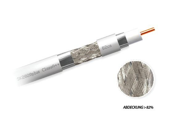 Das SK2020plus überzeugt nicht nur mit der Konformität mit der Brandschutzklasse B2ca, sondern auch mit einem hohen Schirmungsmaß von 135 typ dB und hervorragenden Dämpfungseigenschaften. Es ist somit ideal für den Einsatz in SAT, BK und terrestrischen Anlagen geeignet. Rauchentwicklung s1a, Säuregehalt a1, Abtropfen/Abfallen d1.