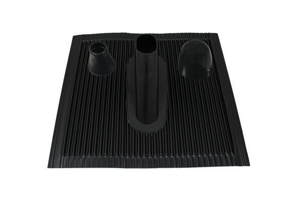 Das Montageset ist geeignet für Masten mit 48mm Durchmesser. Im Lieferumfang enthalten sind 1x Alublechziegel schwarz, 1x Dichtungsmanschette und 1x Mastkappe mit Kabeleinführung für 18 Kabel.