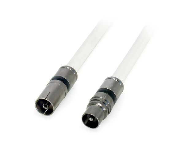 zur Verbindung zwischen Antennendose und Receiver / TV-Gerät / Radio, hochwertige Ausführung: Innenleiter 1,0 mm, 3-fach geschirmt, Folie geklebt, Geflecht: 24 x 7 x 0,10mm. Im Polybeutel mit Reiter.