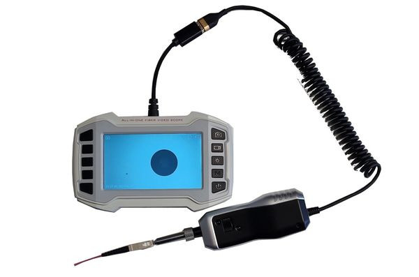 Videomikroskop zur Überprüfung von LWL-Steckern und -Panels. Inklusive externen Monitor. Videmikroskop kann auch per USB an den OTDRBasic angeschlossen werden.