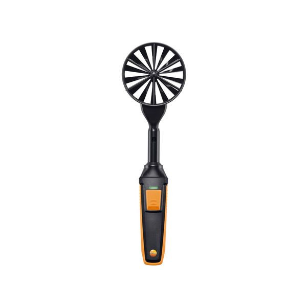 Nutzen Sie die Flügelrad-Sonde mit dem passenden testo Multifunktionsmessgerät (bitte separat bestellen), um Strömungsgeschwindigkeit, Volumenstrom und Temperaturen bis +70 °C zu messen. Flügelrad-Sonde mit Bluetooth inkl. Temperatursensor – AusstattungÜber Bluetooth werden die Messwerte der Flügelrad-Sonde bis zu einer Entfernung von 20 m an Ihr Messgerät übertragen.Das klar strukturierte Messmenü für Volumenstrom ermöglicht die intuitive Bedienung des Messgeräts. Dank komfortabler Eingabe von Dimension und Geometrie des Kanalquerschnitts wird der Volumenstrom exakt berechnet. Zeitliche und punktuelle Mittelwertbildung, durchschnittlicher Volumenstrom, aktueller Messwert sowie Min-/Max-Werte werden im Messgerät angezeigt.Besonders praktisch: Betätigen Sie die Taste an der Flügelrad-Sonde und bedienen Sie das Messgerät. Beispielsweise zum Speichern einzelner Messwerte für die punktuelle Mittelwertbildung oder auch, um Messreihen für die zeitliche Mittelwertbildung zu starten und zu stoppen. Kabellos und platzsparend: mehr Anwendungen, weniger EquipmentGrenzenlos vielseitig: Ein universell einsetzbarer Handgriff lässt sich mit sämtlichen Sondenköpfen verbinden – so meistern Sie mehr Anwendungen mit weniger Equipment und sparen Platz. Der Bluetooth-Handgriff sorgt für mehr Komfort bei Ihrer Messung und weniger Kabelgewirr im Koffer.Oder bestellen Sie zum Anschluss von testo Sondenköpfen den Kabel-Handgriff. Das ist von Vorteil, wenn Bluetooth-Signale nicht erlaubt sind. Muss das Flügelrad in ferner Zukunft getauscht werden, können Sie den Sondenkopf auswechseln.Statten Sie die Flügelrad-Sonde bei Bedarf zusätzlich mit dem ausziehbaren Teleskop mit 90°-Winkel und, falls erforderlich, der Teleskop-Verlängerung (beide separat bestellbar; in Kombination 2 Meter Länge) aus. Ein bequemes Messen an Deckenauslässen ist damit gesichert. Intelligentes KalibrierkonzeptMit der digitalen Flügelrad-Sonde profitieren Sie von besonders präzisen Messergebnissen, da die Messunsicherheit vom Messgerät entfällt. Zur Kalibrierung schicken Sie nur den Sondenkopf ein – so bleibt das Messgerät durchgehend im Einsatz. Anwendungsgebiete der Flügelrad-Sonde mit BluetoothLuft-/Deckenauslässe: Mit der Flügelrad-Sonde bestimmen Sie Strömungsgeschwindigkeit und Volumenstrom am Luftauslass. Beim schleifenförmigen Abfahren des Gitterquerschnitts werden die Strömungswerte über eine große Fläche von 100 mm integriert und gemittelt. Dadurch erzielt man mit der Schleifenmessung präzise Messergebnisse.Für Messungen an Deckenauslässen: Das ausziehbare Teleskop (1,0 m Länge) mit gut lesbarer Skalierung und 90°-Winkel lässt sich mühelos auf die Flügelrad-Sonde aufstecken. Für die richtige Positionierung der Sonde unter der Decke sorgt der 90°-Winkel. Nutzen Sie für hohe Decken zusätzlich die Teleskop-Verlängerung und erreichen damit eine Gesamtlänge von 2 Metern (ausziehbares Teleskop und Teleskop-Verlängerung bitte separat bestellen).Tellerventile, Lüftungsgitter und Drallauslässe: Für komfortable und präzise Messungen an Tellerventilen und Lüftungsgittern empfehlen wir Ihnen, die Flügelrad-Sonde mit dem Trichterset testovent 417 (bitte separat bestellen) einzusetzen. So ist ein einfaches Prüfen der Zu- und Abluft gewährleistet – wie beispielsweise in der kontrollierten Wohnraumlüftung.Nimmt man den Volumenstrom-Gleichrichter (bitte separat bestellen) hinzu, wird bei Messungen an Drallauslässen eine beeindruckend hohe Präzision erreicht.