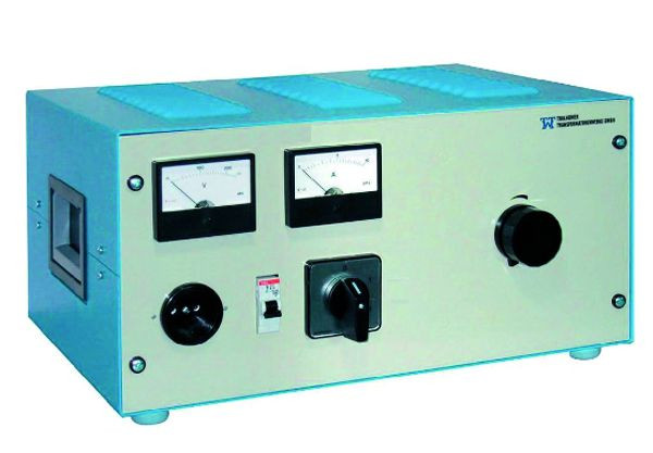 Labor-Regel-Trenn-Transformator 2500 VA Trenntransformator nach EN 61558, Schutzklasse I, Prüfspannung PRI-SEC 3,75 kV Einstellbarer Trenntrafo für die Wechselspannungsregelung in Labors, Prüffeldern sowie Service-Werkstätten, da durch den eingebauten Trenn-Transformator eine galvanische Trennung zwischen Primär- und Sekundärseite gewährleistet ist. Robustes, stabiles Metallgehäuse und Tragegriff für den mobilen Einsatz. Anzeigeinstrumente für Strom und Spannung. Kontrolllampe, Sicherung, Schutzschalter, Ausgang über eine Steckdose (ohne Schutzkontakt). Galvanische Trennung, Eingang 230 V/AC, Ausgang: 1 x Steckdose , Regelbarer Ausgang 2 - 250 V/AC, Leistung 2500 VA Abmessung H x B xT: 230 x 460 x 320 mm