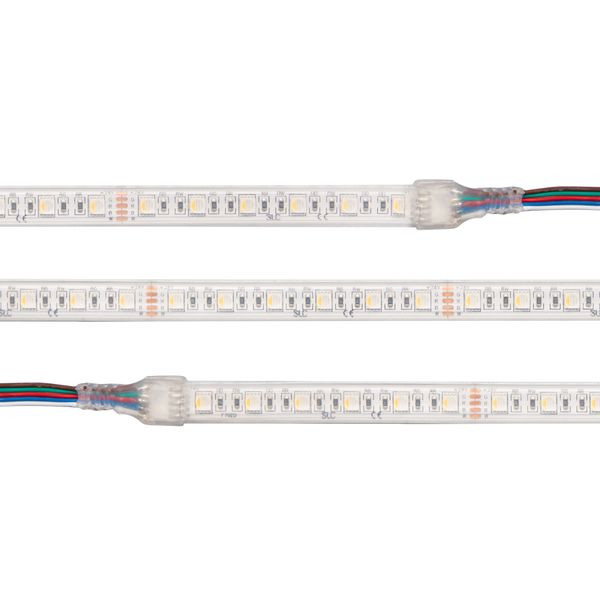 | Kurzbeschreibung | RGB/W-Technologie: Mehrfarbiger LED-Strip mit 3000K Weißlicht. Ideal für kreative Installationen mit der Option auf neutrales Licht in einem Streifen. |