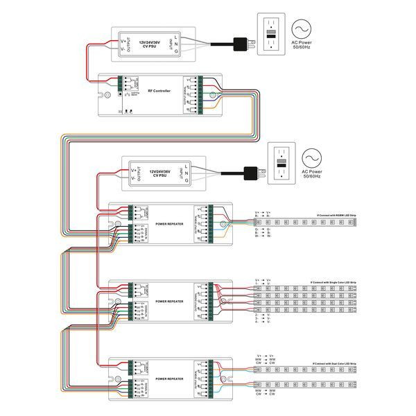 Wiederholt das PWM-Dimmsignal von 1 bis 4 Kanälen -. Mono, TW, RGB oder RGBW.