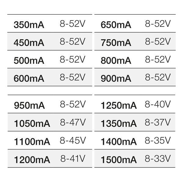 | Kurzbeschreibung | Dimmbarer 50W LED-Treiber, ZigBee 3.0, 350-1500mA Konstantstrom. DIP-Schalter für Stromwahl. Klasse II, isoliert, PFC, flimmerfrei, Dimmen bis 0,1%. |