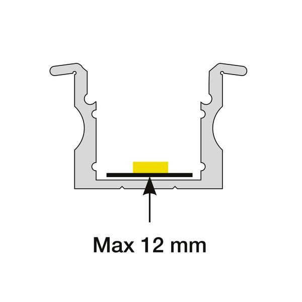 Schlankes Aluminiumprofil. Kann sowohl fu¨r direkte als auch fu¨r indirekte Beleuchtung verwendet werden.