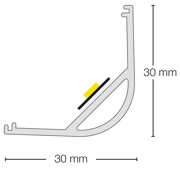 Alu-Eckprofil. Wird sowohl für direkte als auch indirekte Beleuchtung in Decken oder an Wänden verwendet.
