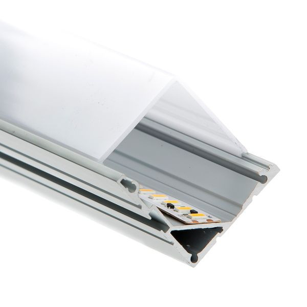 Breites Eckprofil aus Aluminium. Wird sowohl für direkte als auch indirekte Beleuchtung in Decken oder an Wänden verwendet.